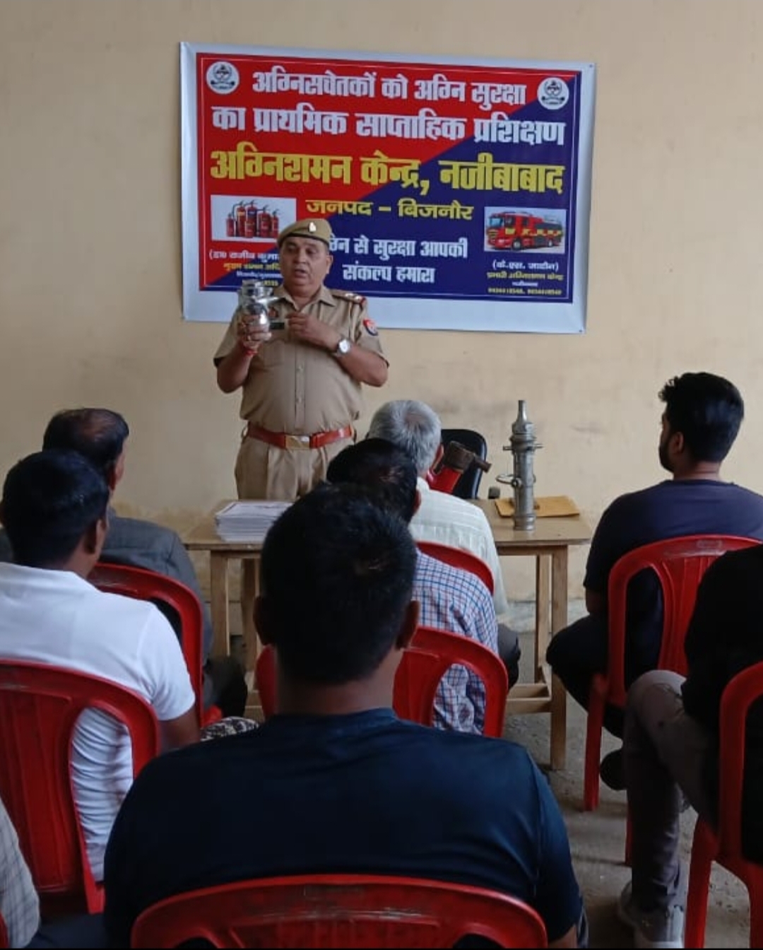 आज दिनांक:19.08.2025 को अपर पुलिस महानिदेशक उत्तर प्रदेश अग्निशमन तथा सेवा मुख्यालय महोदया के आदेशानुसार जनपद बिजनौर में डा0 राजीव कुमार पाण्डेय, मुख्य अग्निशमन अधिकारी, बिजनौर के दिशा-निर्देशन में जनपद के समस्त अग्निशमन केंद्रों पर प्रभारी अग्निशमन अधिकारियो द्वारा प्रत्येक तहसील स्तर पर बनाये गये अग्निसचेतक/फायर वालंटियर को निर्धारित पाठयक्रम के अनुसार 07 दिवसीय नि:शुल्क प्रशिक्षण का कार्यक्रम आयोजित कराया जा रहा है।